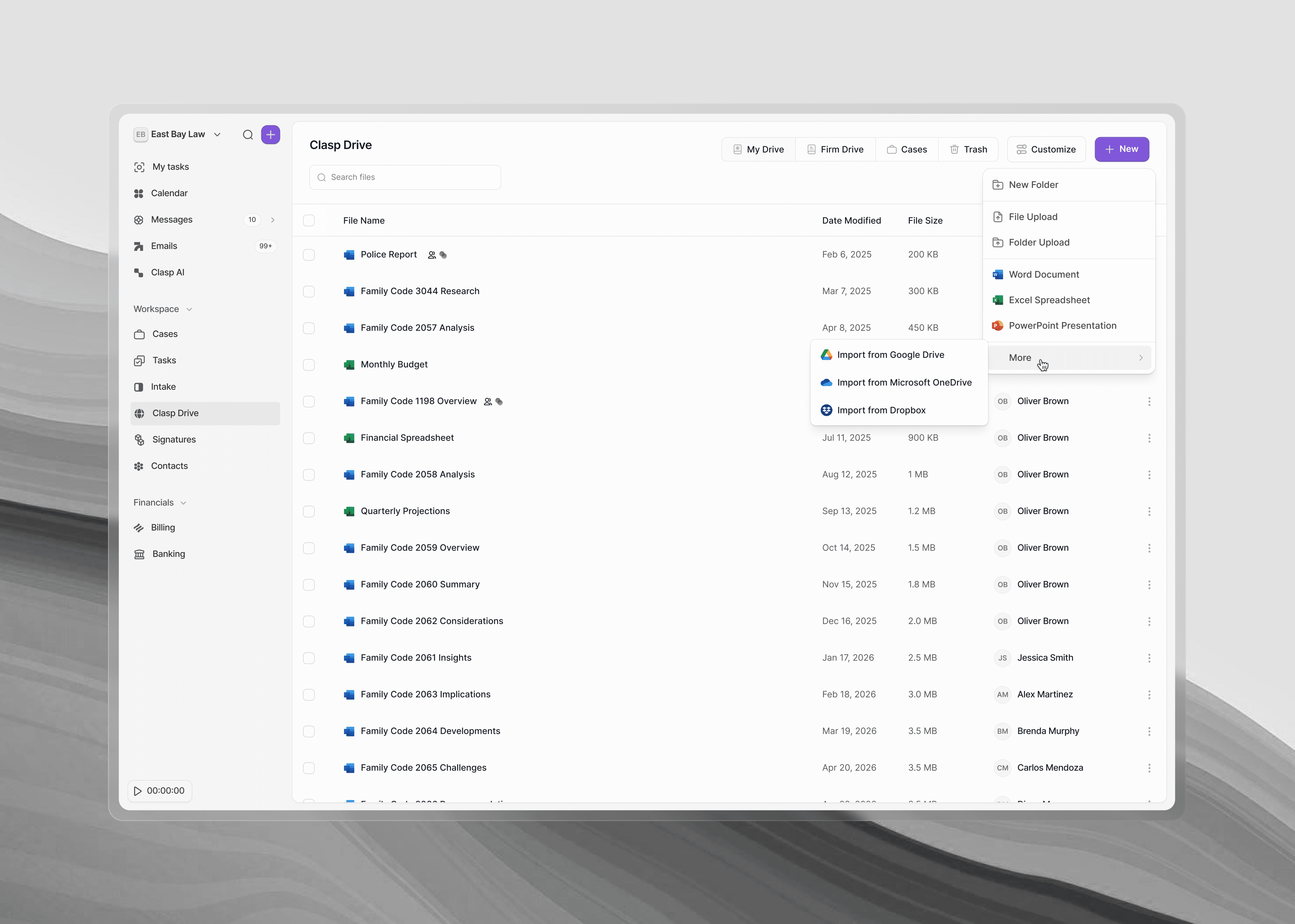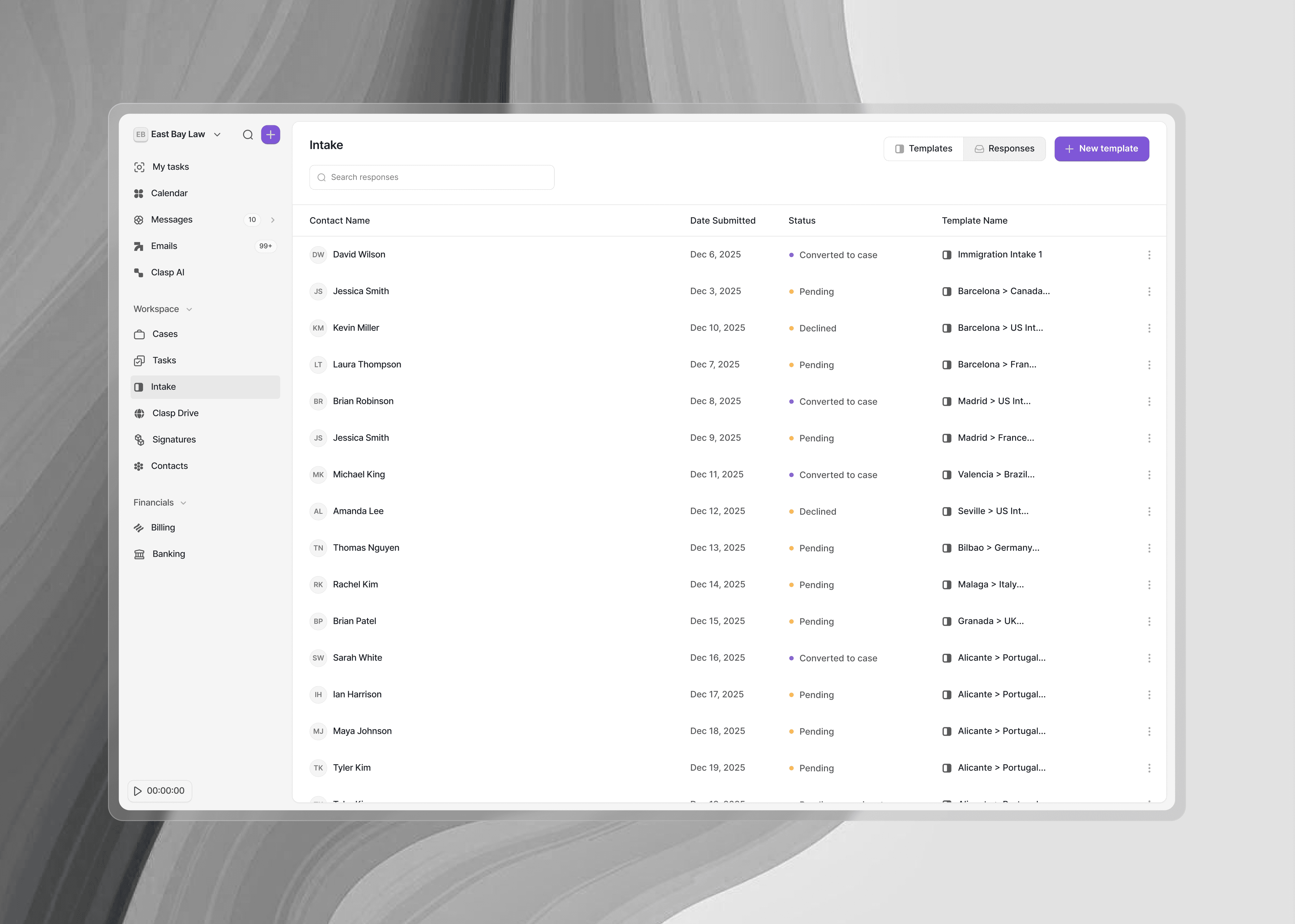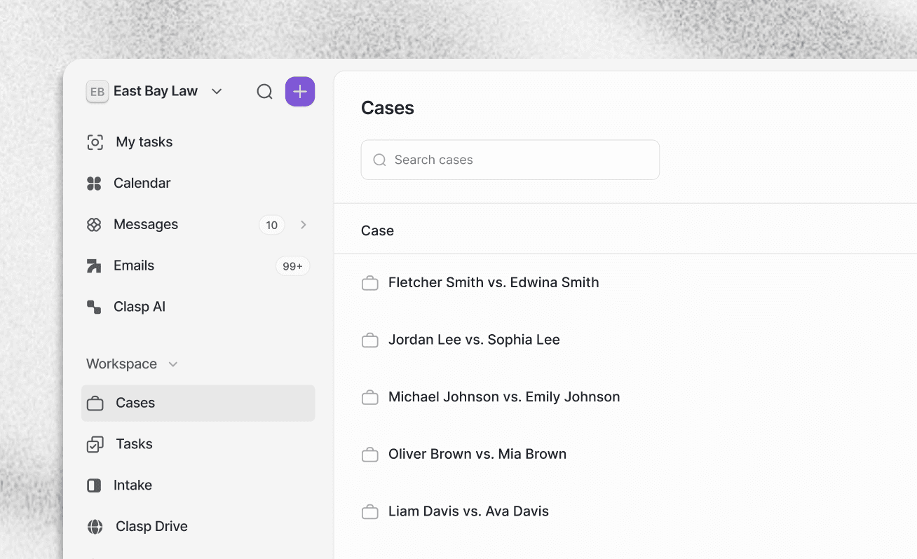 From intake to billing, Clasp replaces the systems your firm relies on.