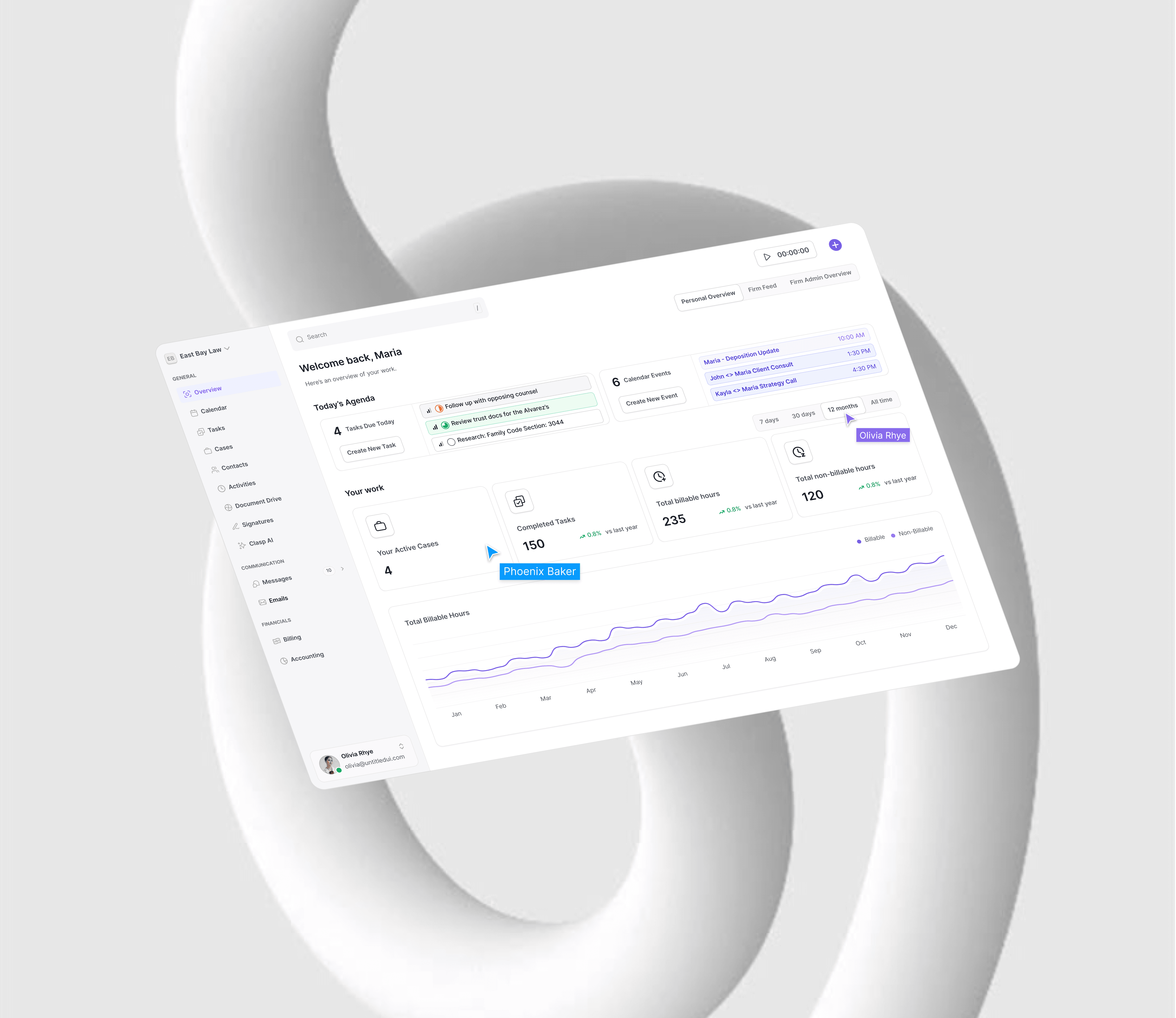 Your law firm's back office, built to grow with you. Everything you need to launch, manage, and scale your law firm with confidence.