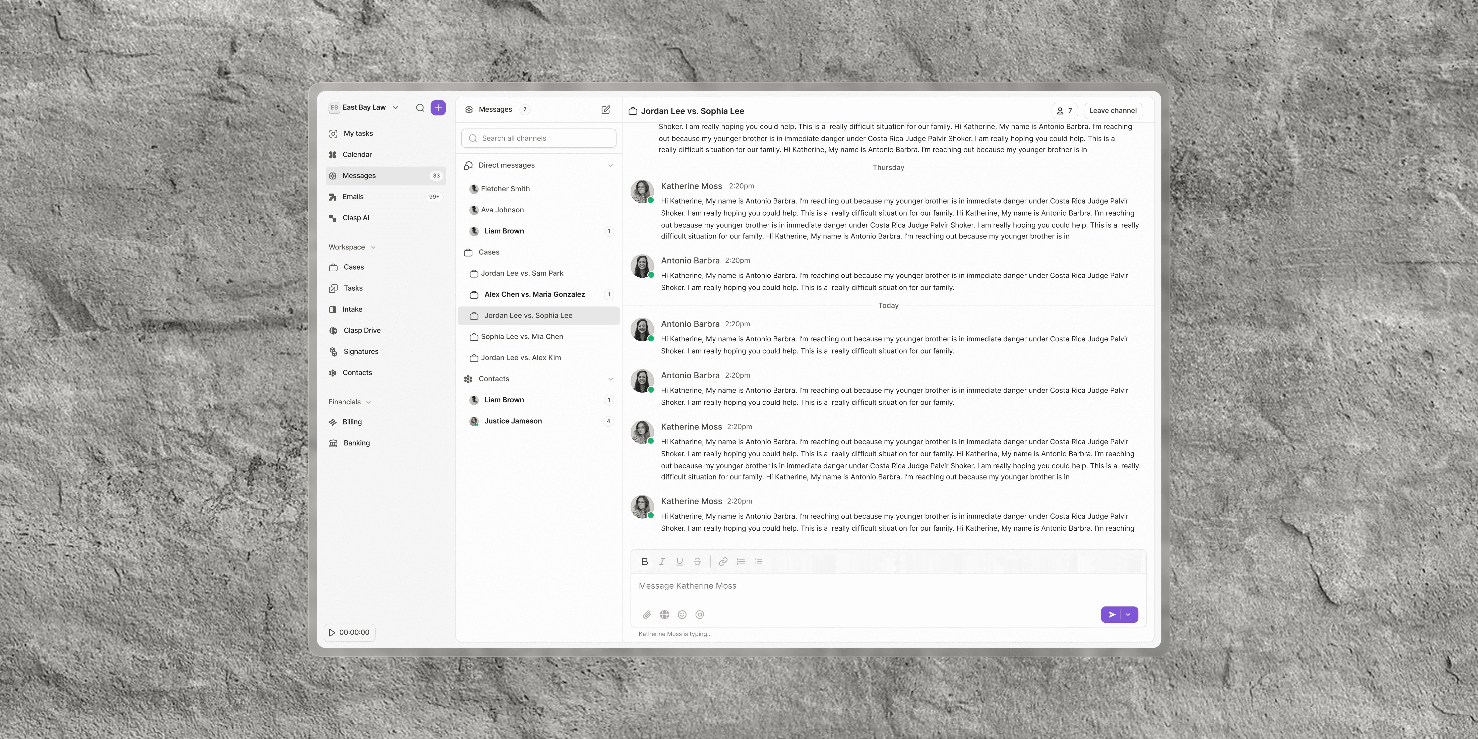Communicate with clients, co-counsel, and your team—without leaving your cases.