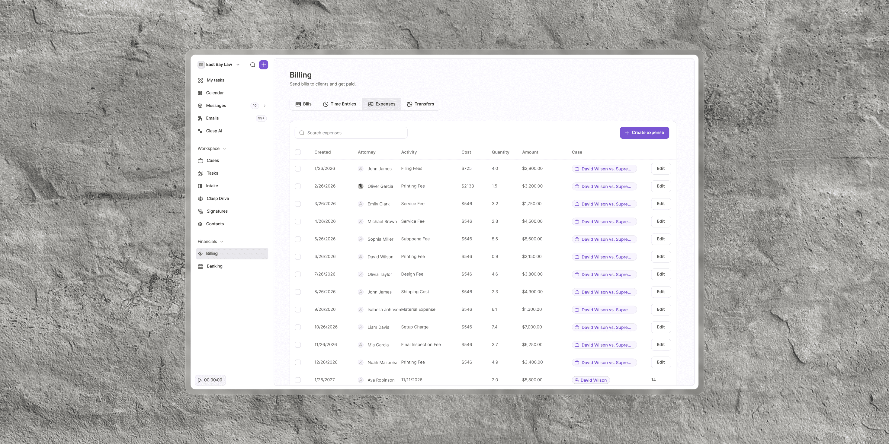 Every expense is tied to a matter, so nothing gets lost or miscategorized.