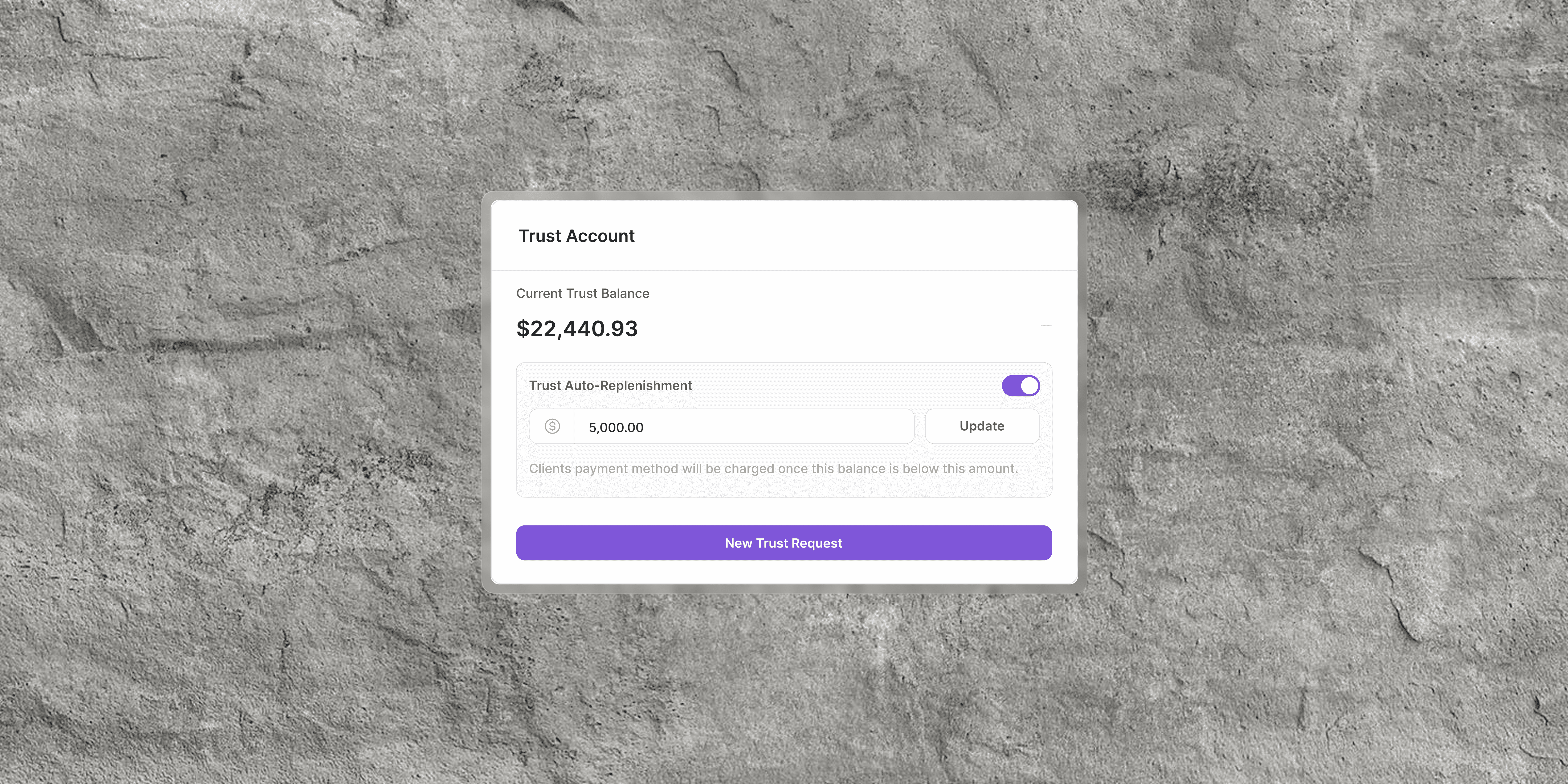 Automatically top up trust balances when they drop below your minimum.
