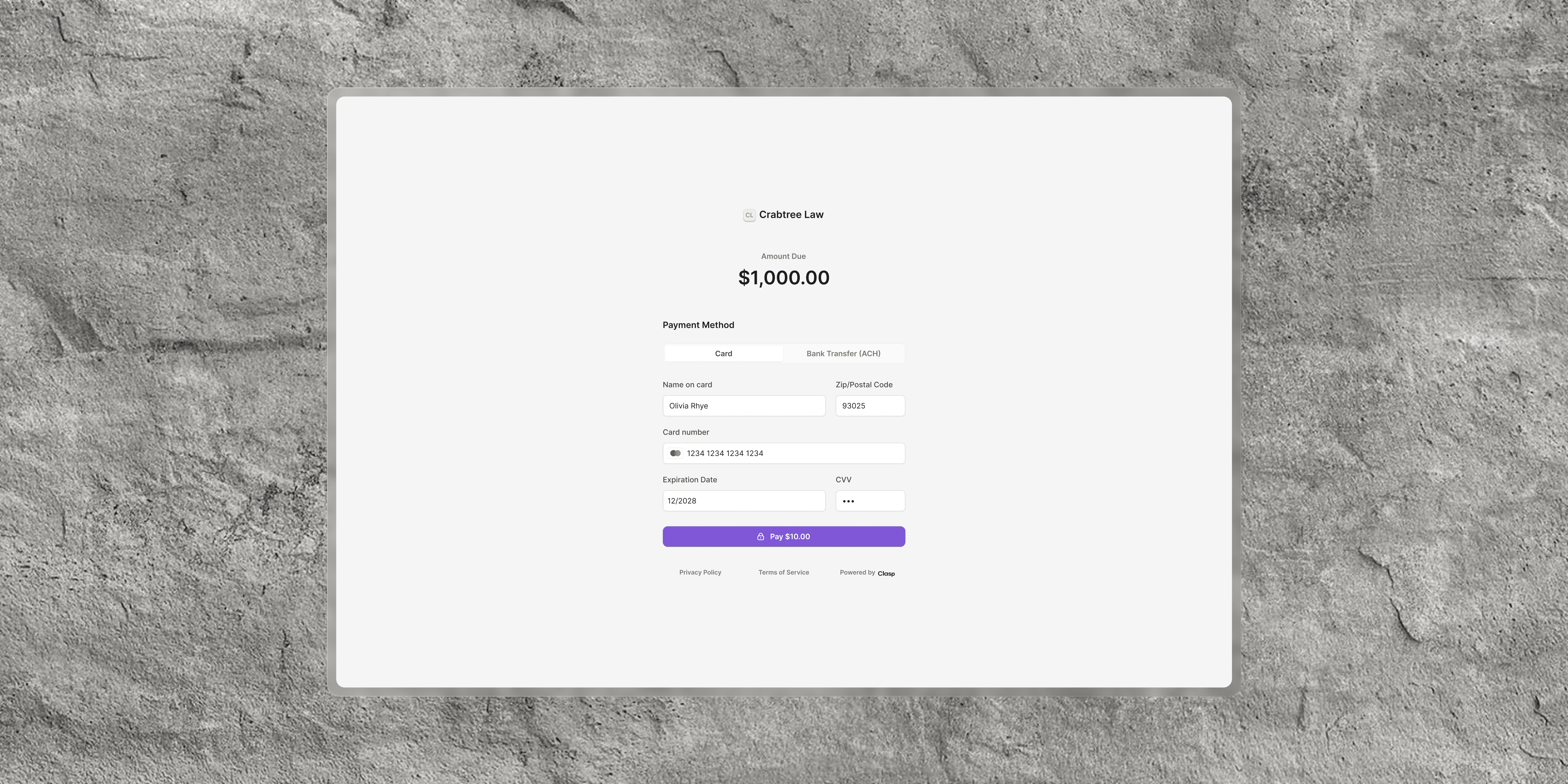 Clients can pay in seconds with a clean, secure payment experience.
